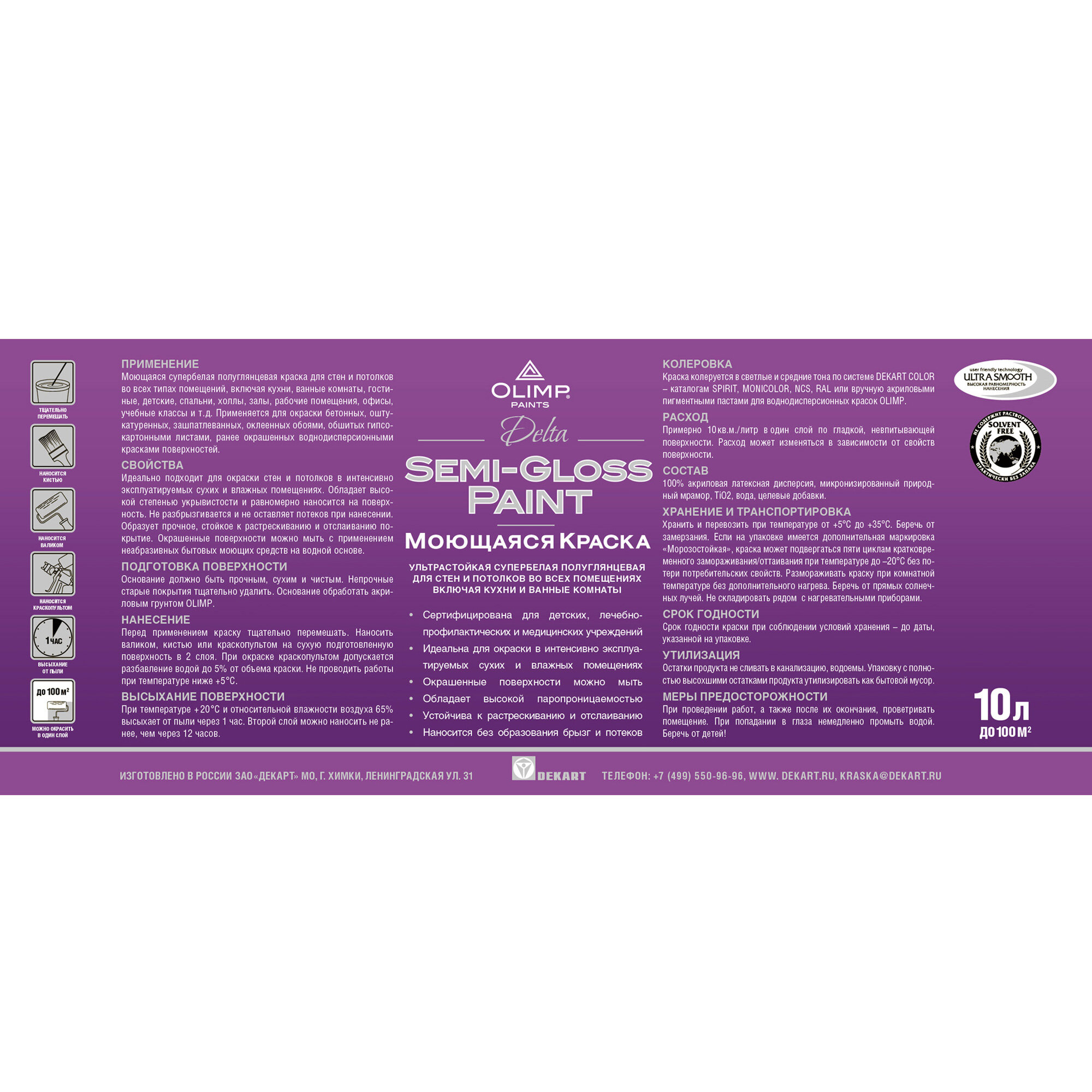 Купить Краска моющаяся для стен и потолков полуглянцевая супербелая OLIMP Delta 10 л