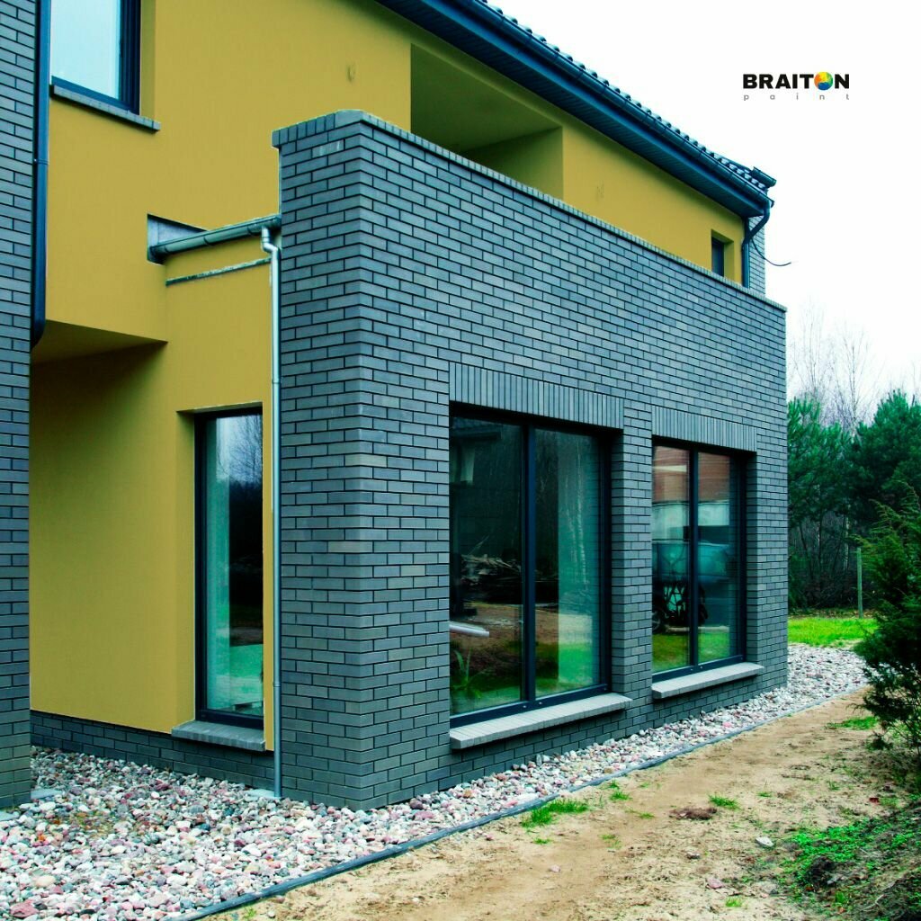 Краска ВД фасадная BRAITON Премиум Сверхпрочная 5 кг. Цвет Желтый светлый (Tikkurila H 301) для наружных и внутренних работ для дерева по бетону, для минеральных поверхностей и штукатурке акриловая