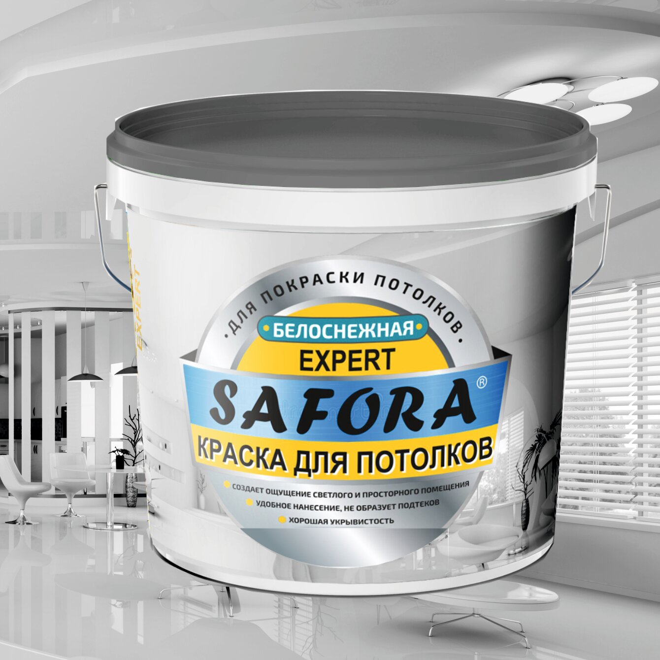 Краска акриловая для потолков белоснежная SAFORA EXPERT 7 кг интересное: