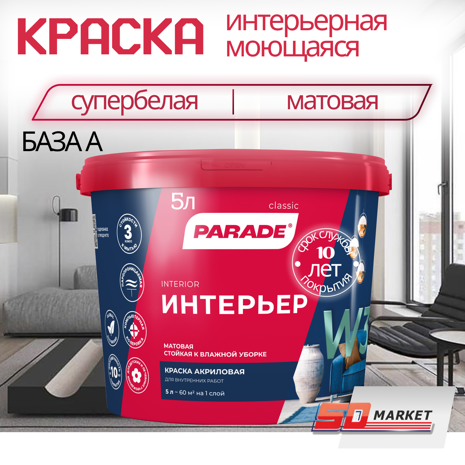 Краска для стен PARADE W3 моющаяся 5л интересное: