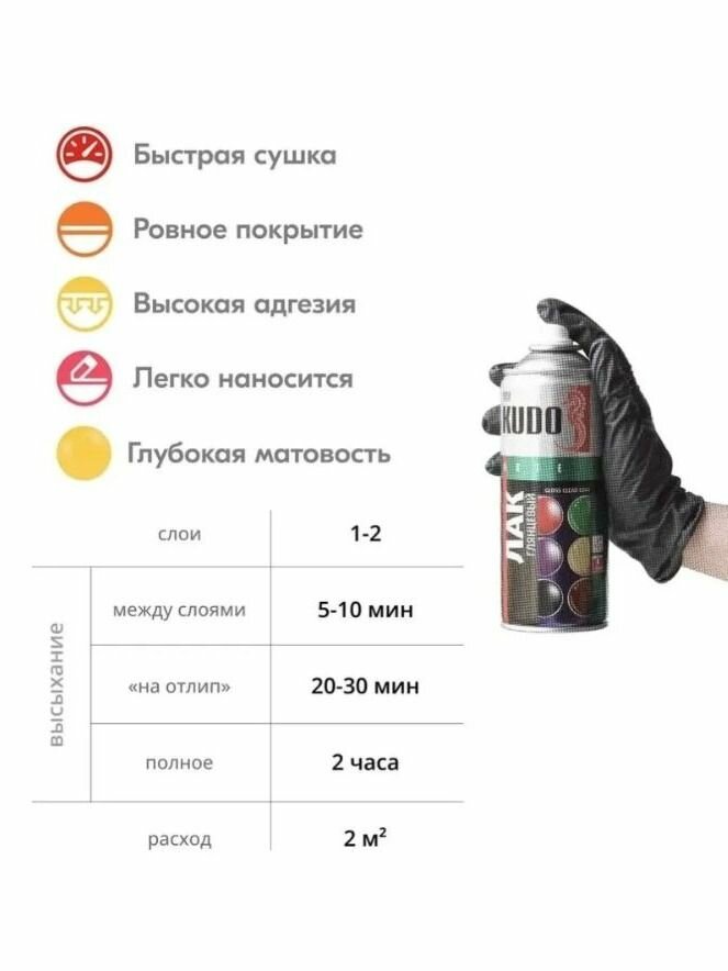 Лак KUDO KU-9004, универсальный, акрил, матовый, прозрачный, 520мл интересное: