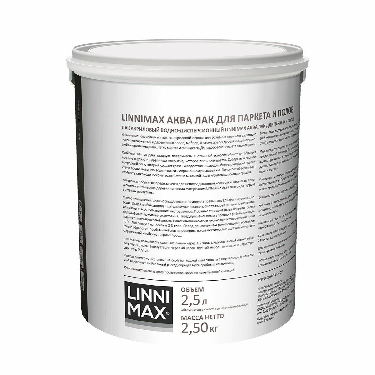 Купить Лак паркетный Linnimax Аква, акриловый, шелковисто-матовый, 2,5 л