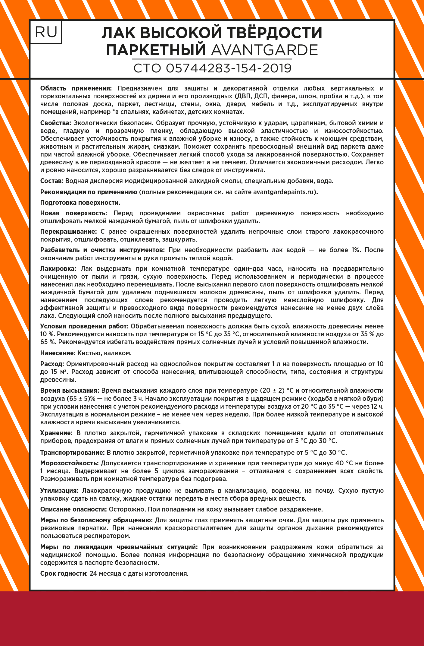 Лак паркетный AvantGarde глянцевый бесцветный 4.5 л