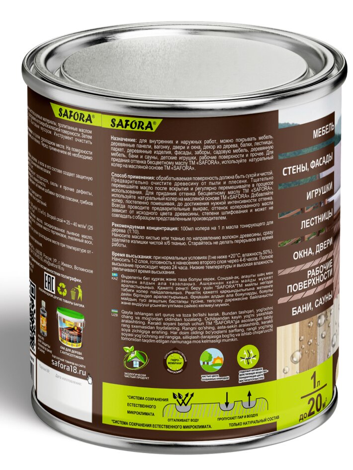 Масло для дерева с воском SAFORA Ольха, 1л для наружных и внутренних работ интересное:
