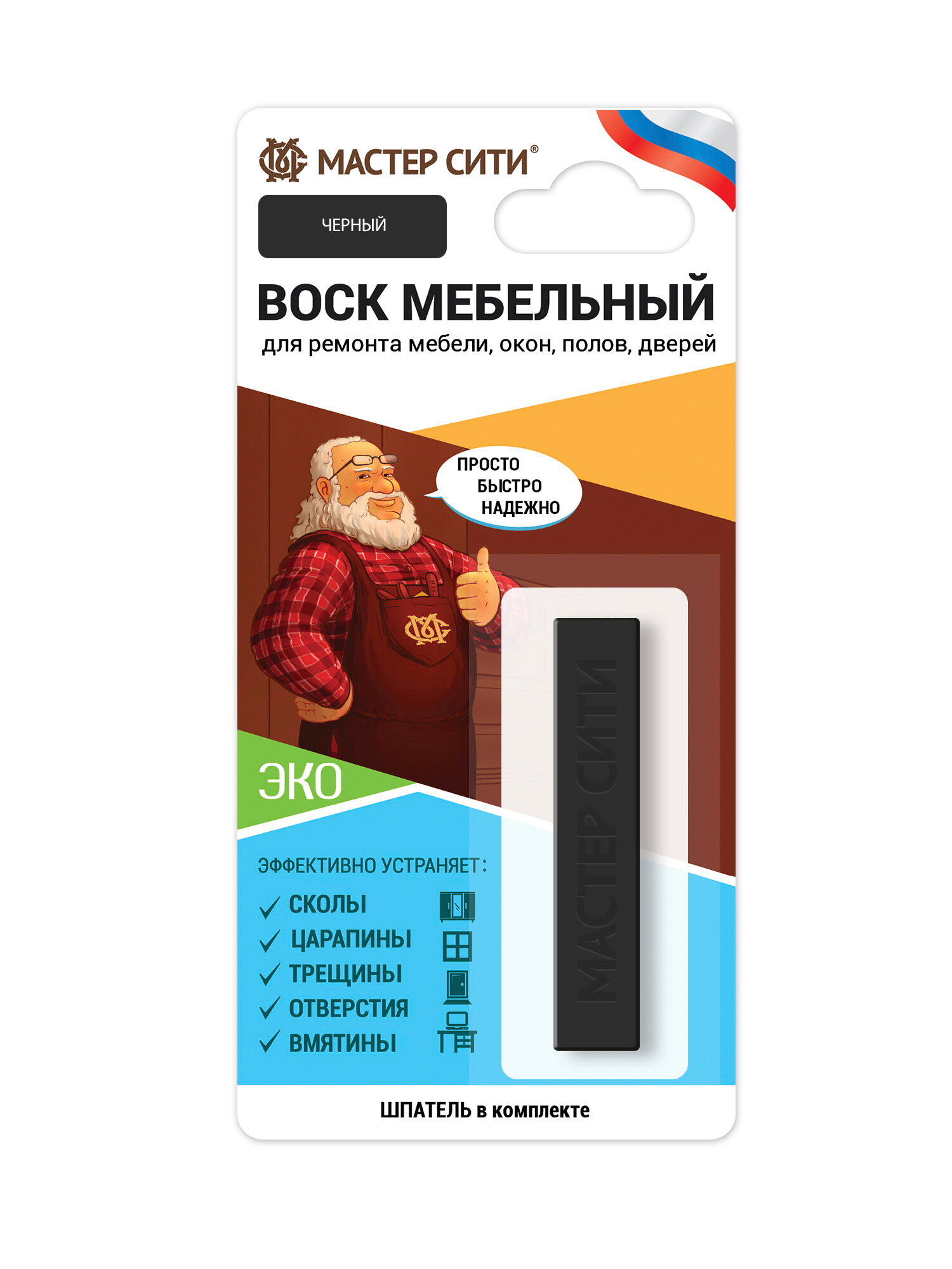 Воск мягкий мебельный Мастер Сити ДР черный 001, брусок 9 г (блистер) интересное: