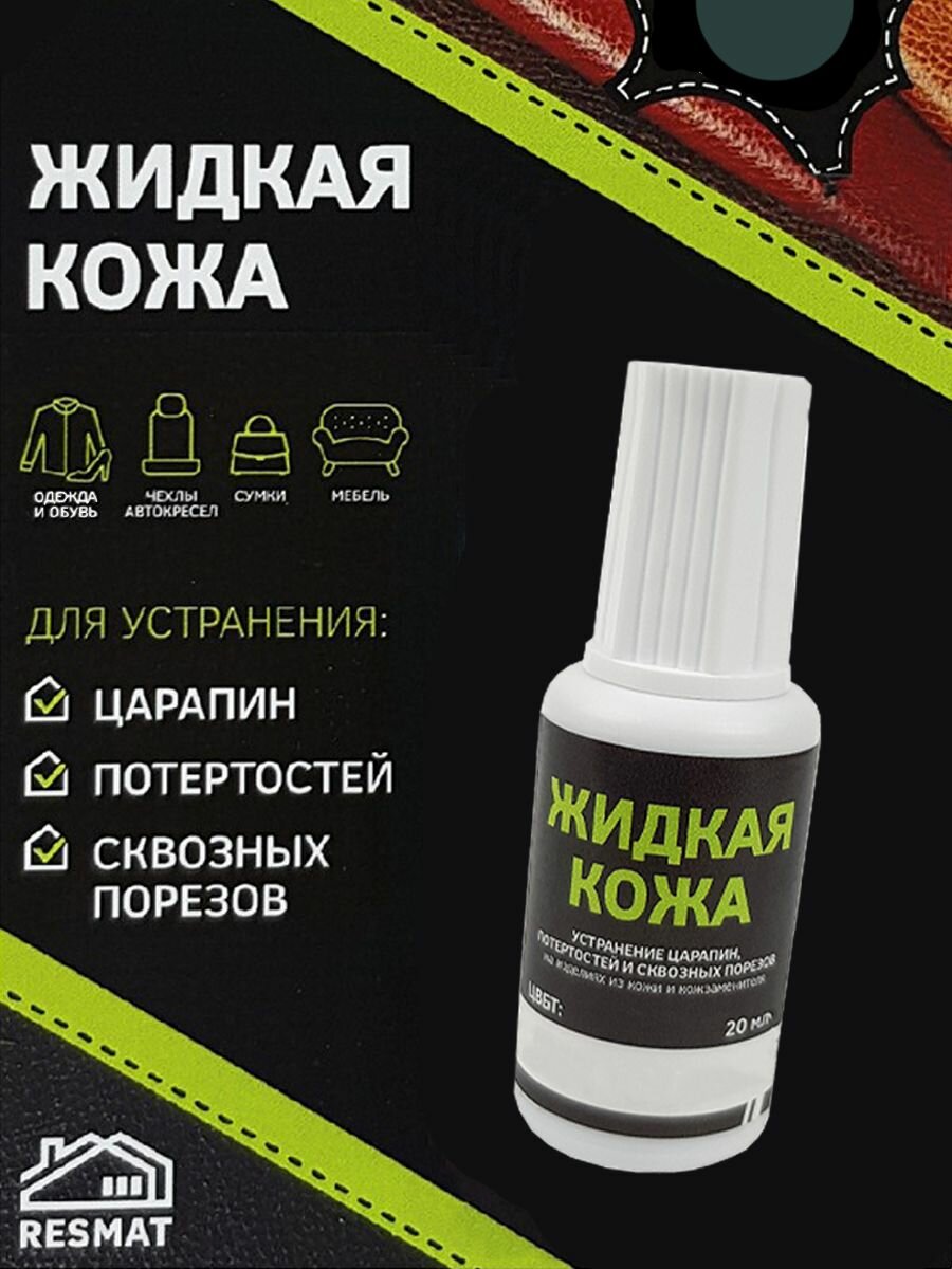 Жидкая кожа Цвет Зеленый 20 мл Устранение царапин , потертостей для кожзаменителя