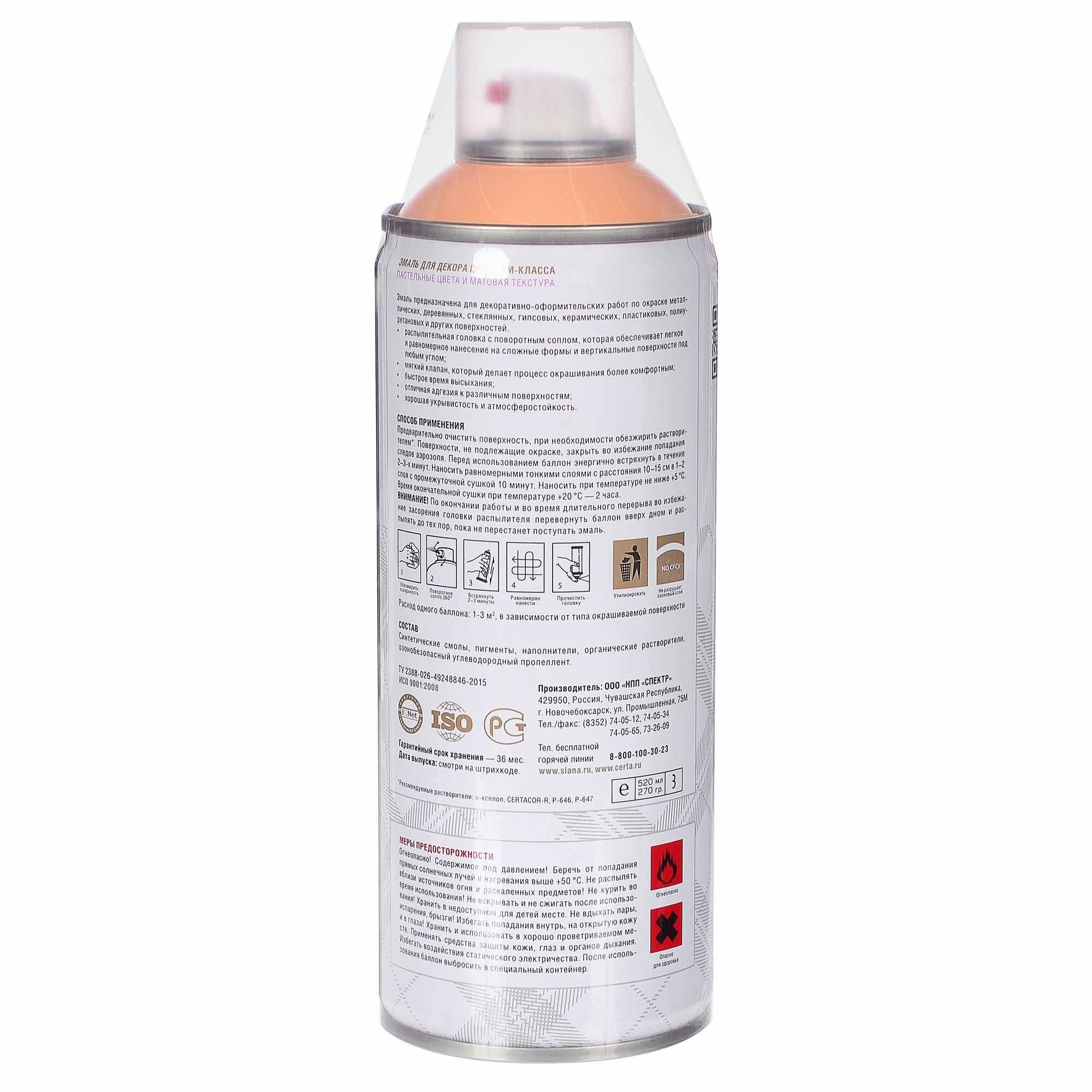 Эмаль аэрозольная Siana provence цвет персиковый 520Мл интересное: