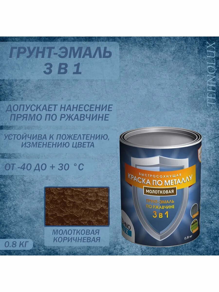 Купить Грунт-эмаль 3 в 1 Технолюкс молотковая коричневая 0,8 кг