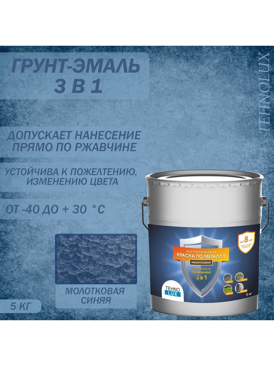 Купить Грунт-эмаль 3 в 1 Технолюкс молотковая синяя 5 кг