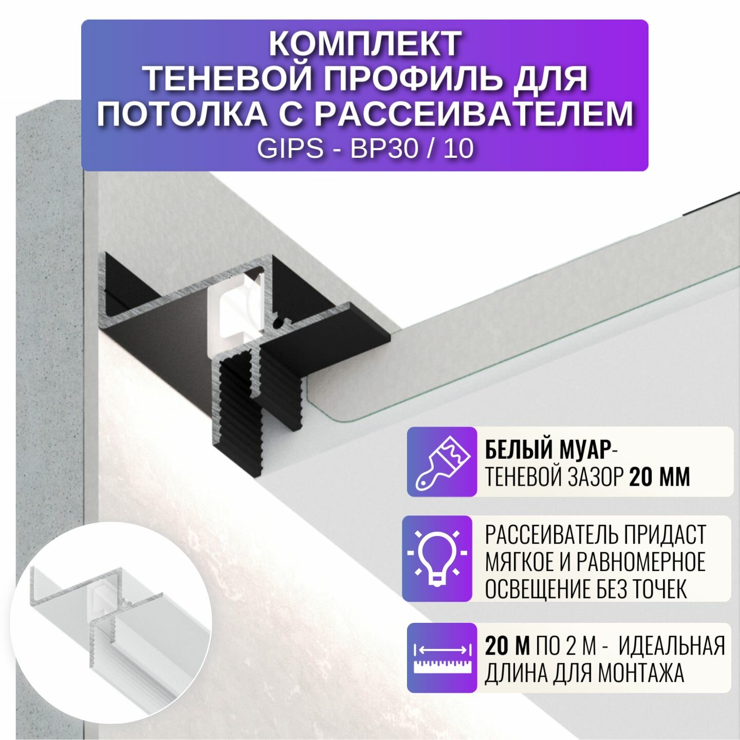 Теневой профиль для потолка из Гипсокартона с рассеивателем 2 м, 10 шт, белый интересное: