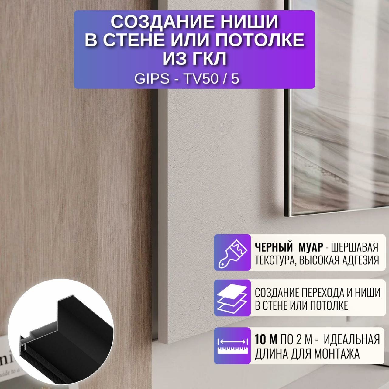 Профиль для создание ниши в стене или потолке из ГКЛ 2 м, 5 шт, цвет черный интересное:
