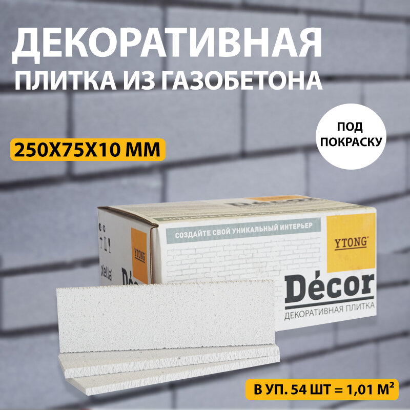 Купить Декоративная плитка YTONG ISTKULT Decor, для покраски, 250x10x75 мм, 54шт