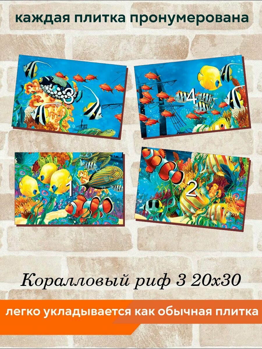 Панно из плитки Fres-co "Коралловый риф 20х30", керамическое, декоративное, полуглянцевое, 60х40 см интересное: