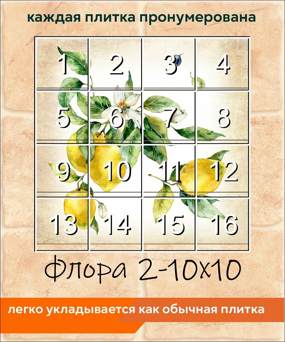 Панно из плитки Fres-co "Флора 2 10х10", керамическое, суперматовое, декоративное 40х40 см интересное: