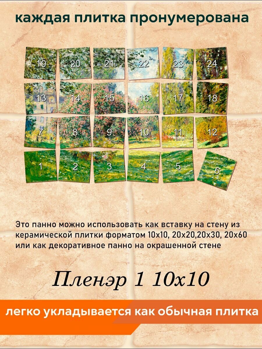 Панно из плитки Fres-co "Пленэр 1 10х10", керамическое, с рисунком, суперматовое, 60х40 см интересное: