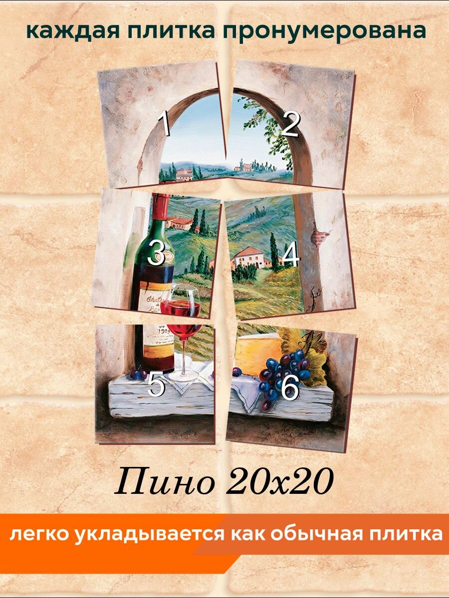 Панно из плитки Fres-co "Пино 20х20", керамическое, полуглянцнвое, декоративное, 40х60 см интересное: