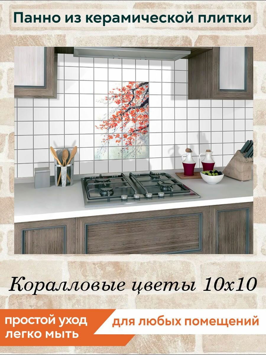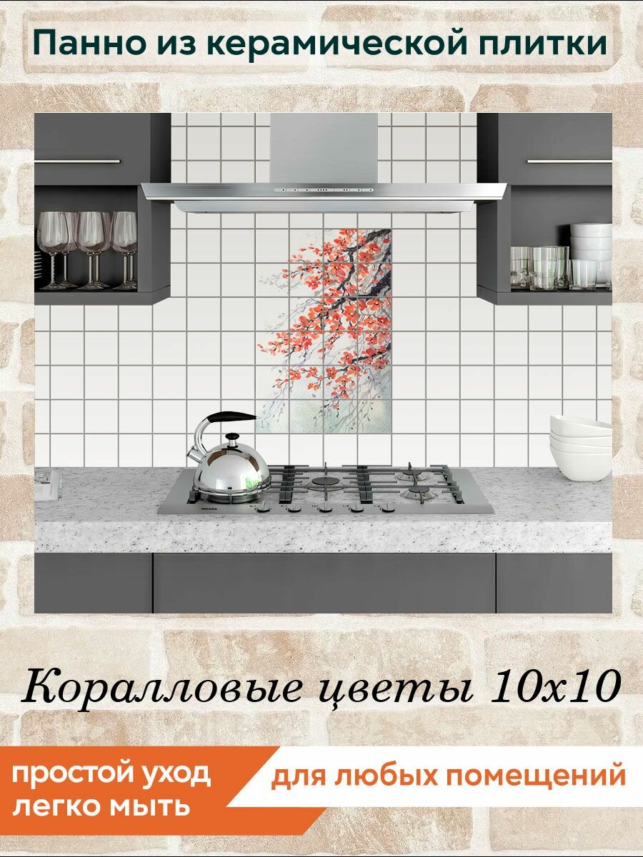 Панно из плитки Fres-co "Коралловые цветы 10х10", керамическое, суперматовое, декоративное, 40х60 см интересное: