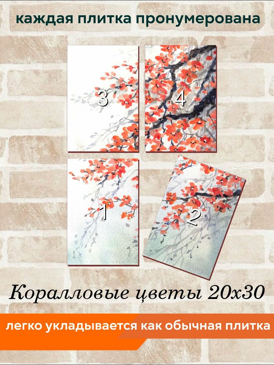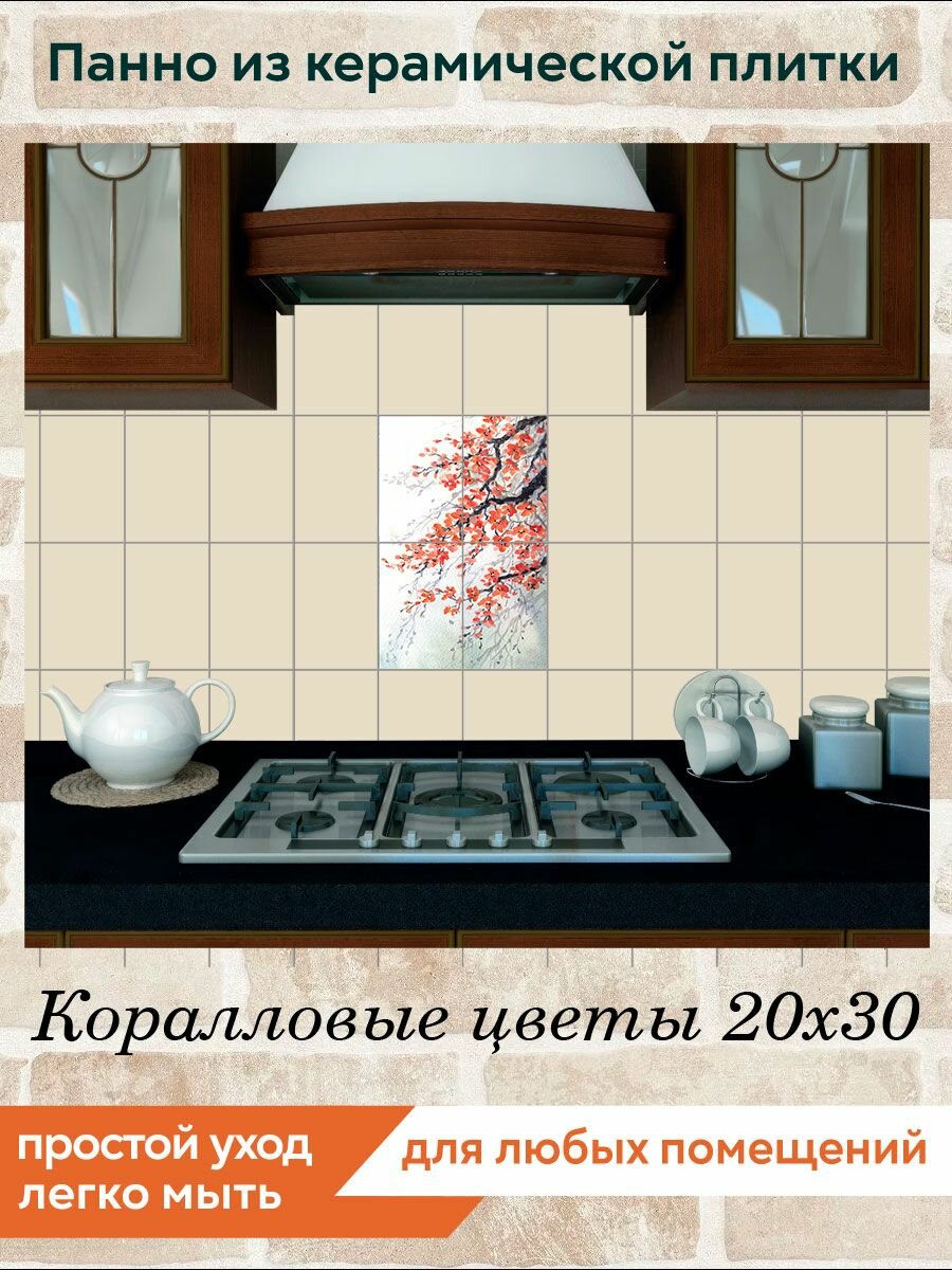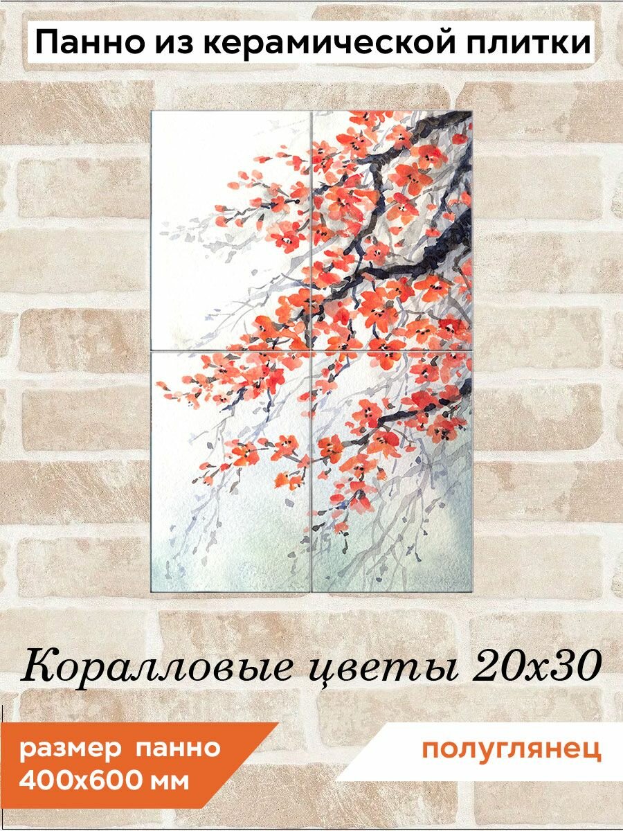 Панно из плитки Fres-co "Коралловые цветы 20х30", керамическое, полуглянцевое, декоративное, 40х60 см интересное: