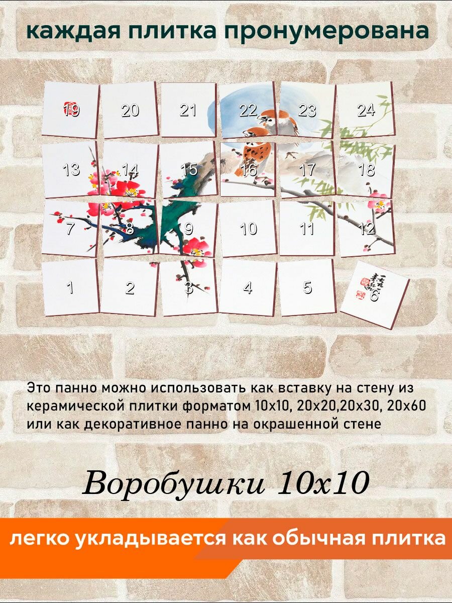 Панно из плитки Fres-co "Воробушки 10х10" керамическое, суперматовое, с рисунком, 60х40 см интересное: