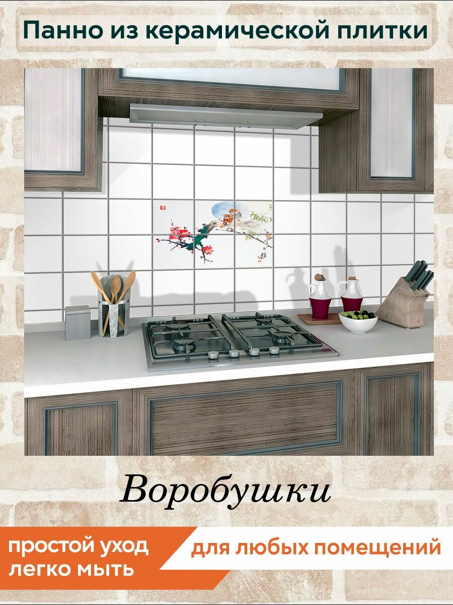 Панно из плитки Fres-co "Воробушки" керамическое, полуглянцевое, с рисунком, 60х40 см интересное: