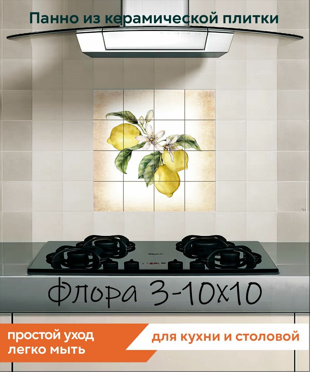 Панно из плитки Fres-co "Флора 3 10х10", керамическое, суперматовое, декоративное 40x40 см интересное: