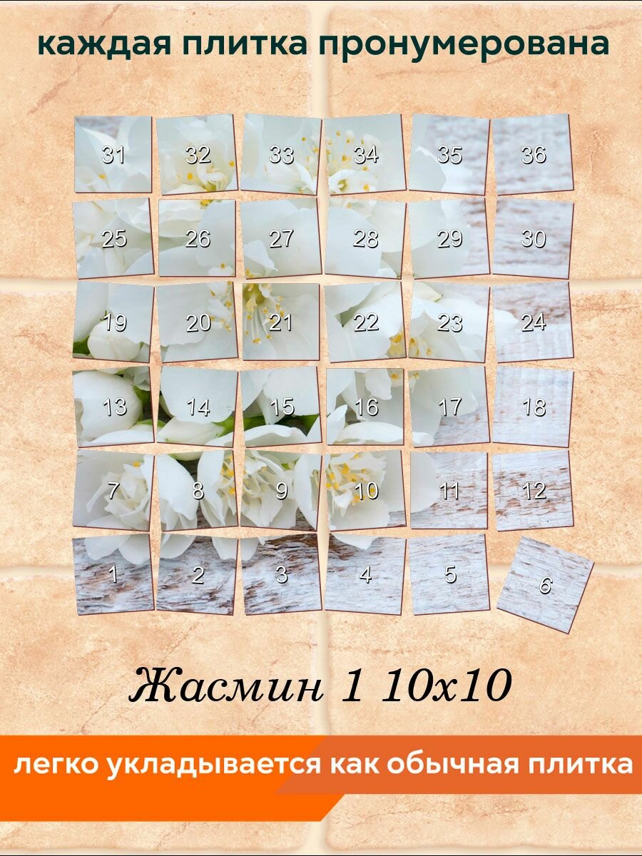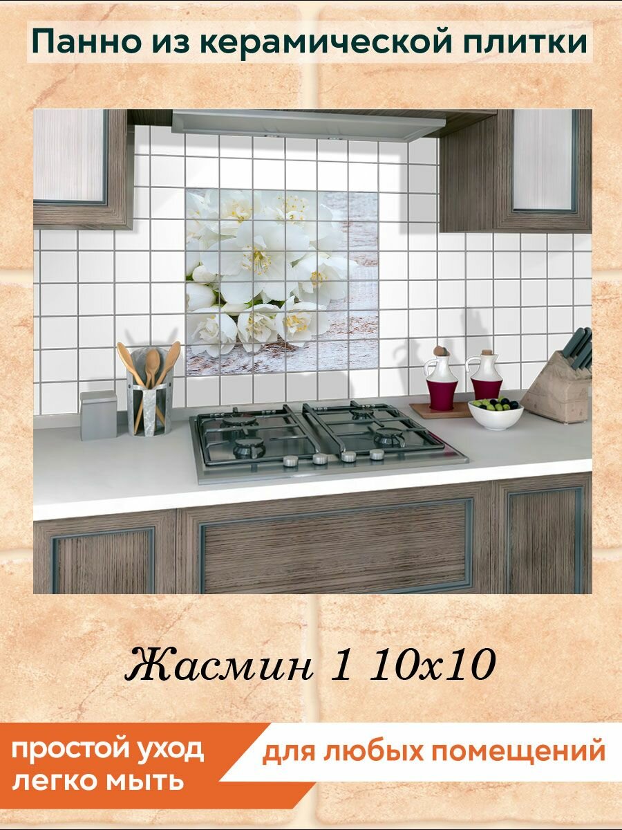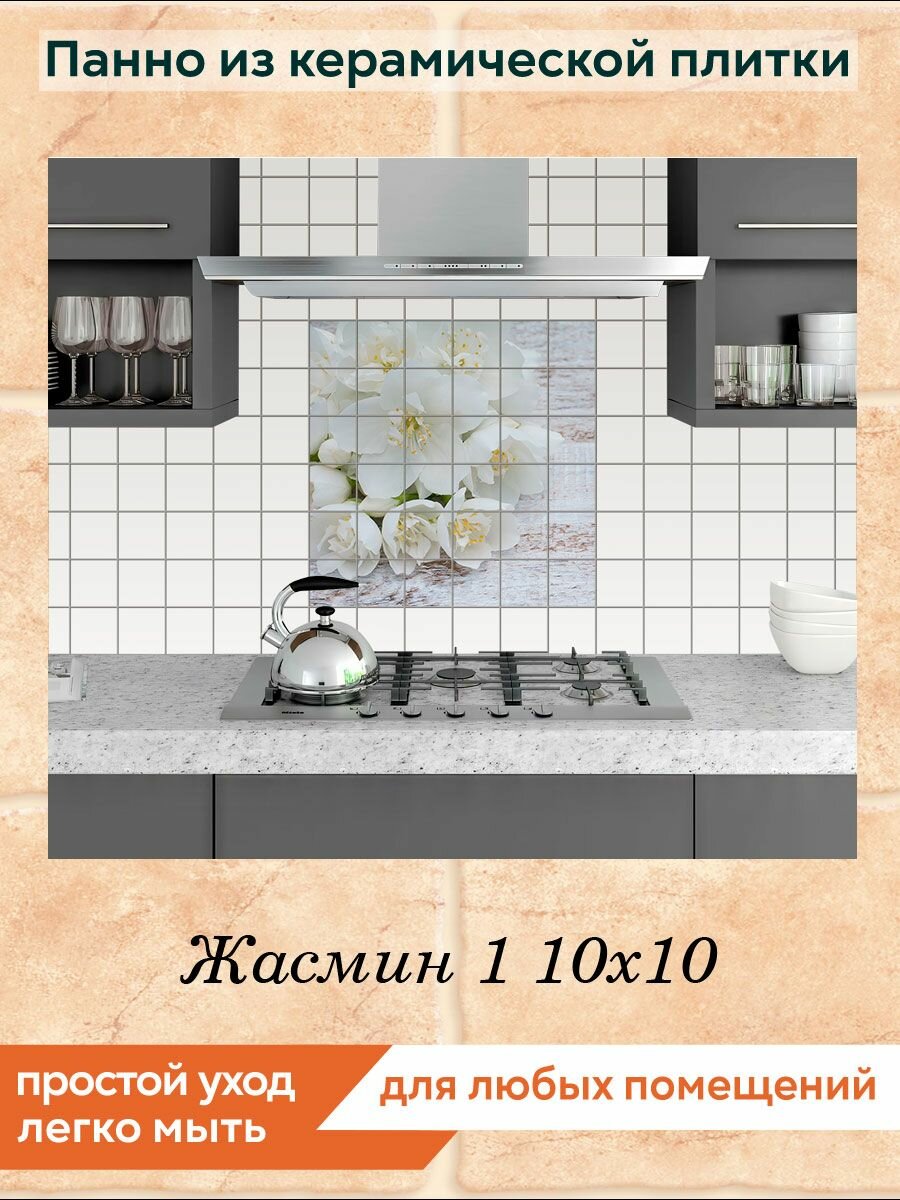 Панно из плитки Fres-co "Жасмин 1 10х10", керамическое, суперматовое, декоративное, 60х60 см интересное: