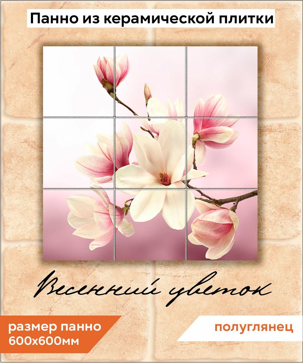 Панно из плитки Fres-co "Весенний цветок", керамическое, декоративное, полуглянцевое, 60x60 см интересное: