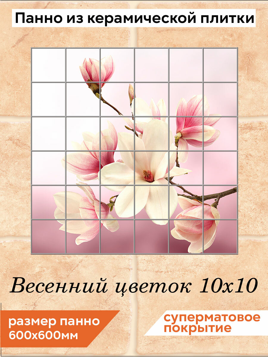 Панно из плитки Fres-co "Весенний цветок 10х10", керамическое, суперматовое, декоративное, 60х60 см интересное: