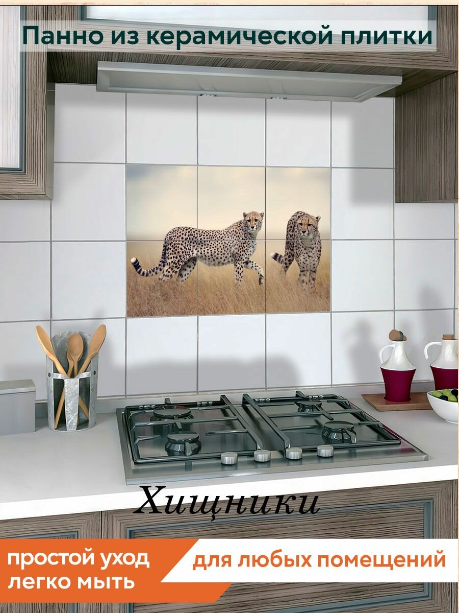 Панно из плитки Fres-co "Хищники 1", керамическое, декоративное, полуглянцевое, 60х40 см интересное: