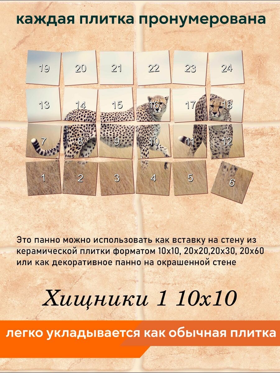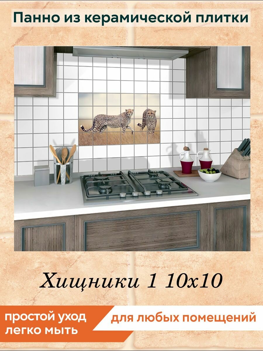 Панно из плитки Fres-co "Хищники 1 10х10", керамическое, декоративное, суперматовое, 60х40 см интересное:
