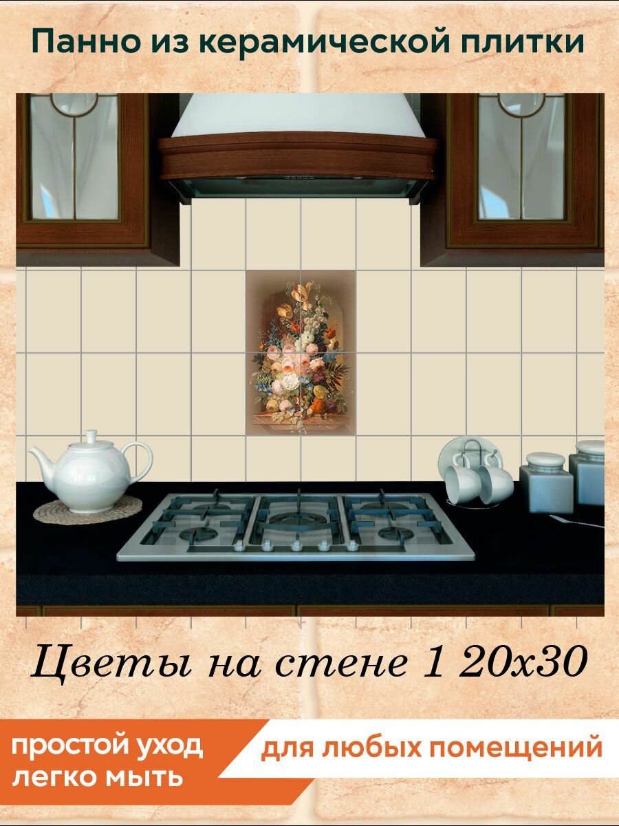 Панно из плитки Fres-co "Цветы на стене 1 20х30", керамическое, полуглянцевое, декоративное, 40х60 см интересное: