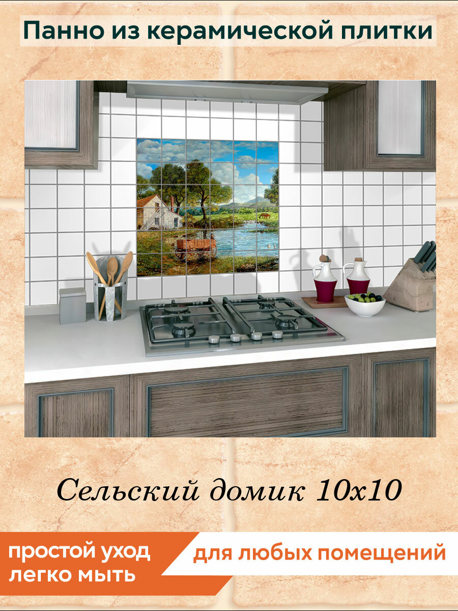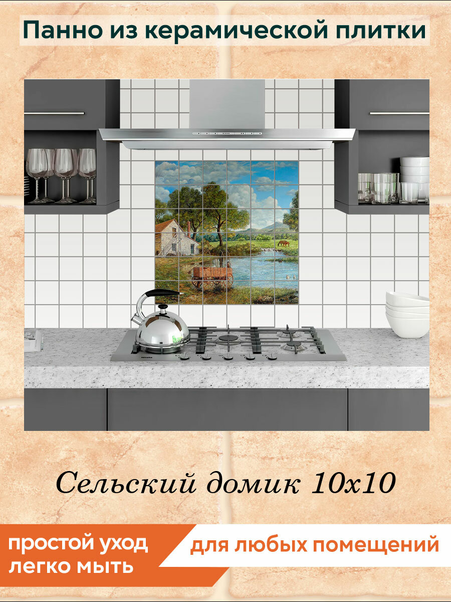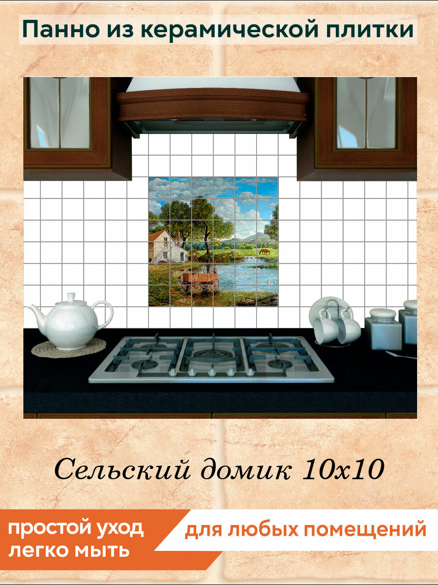 Панно из плитки Fres-co "Сельский домик 10х10", керамическое, суперматовое, декоративное, 60х60 см интересное: