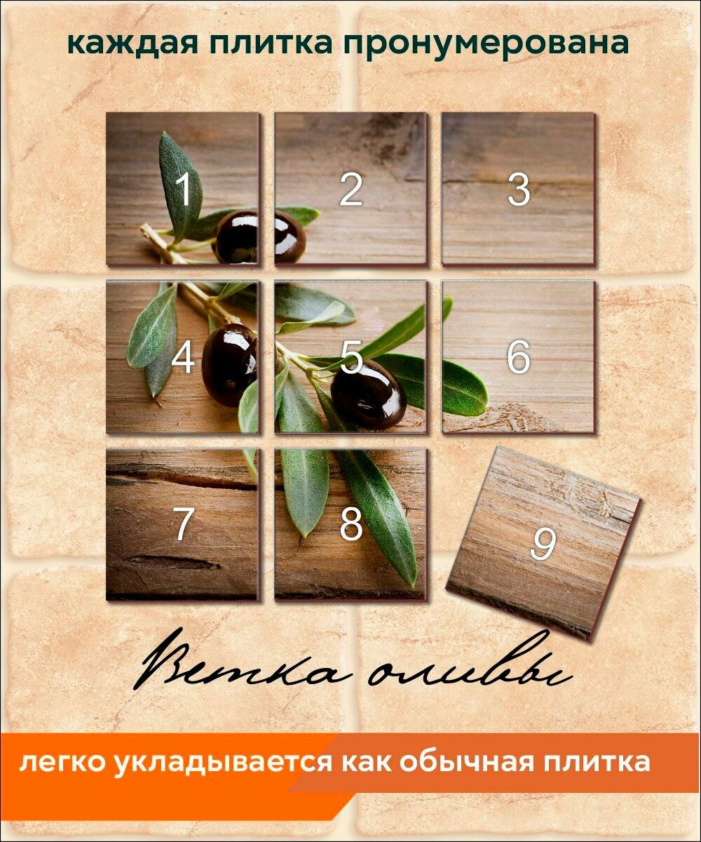 Панно из плитки Fres-co "Ветка оливы", керамическое, декоративное, полуглянцевое 60x60 см интересное: