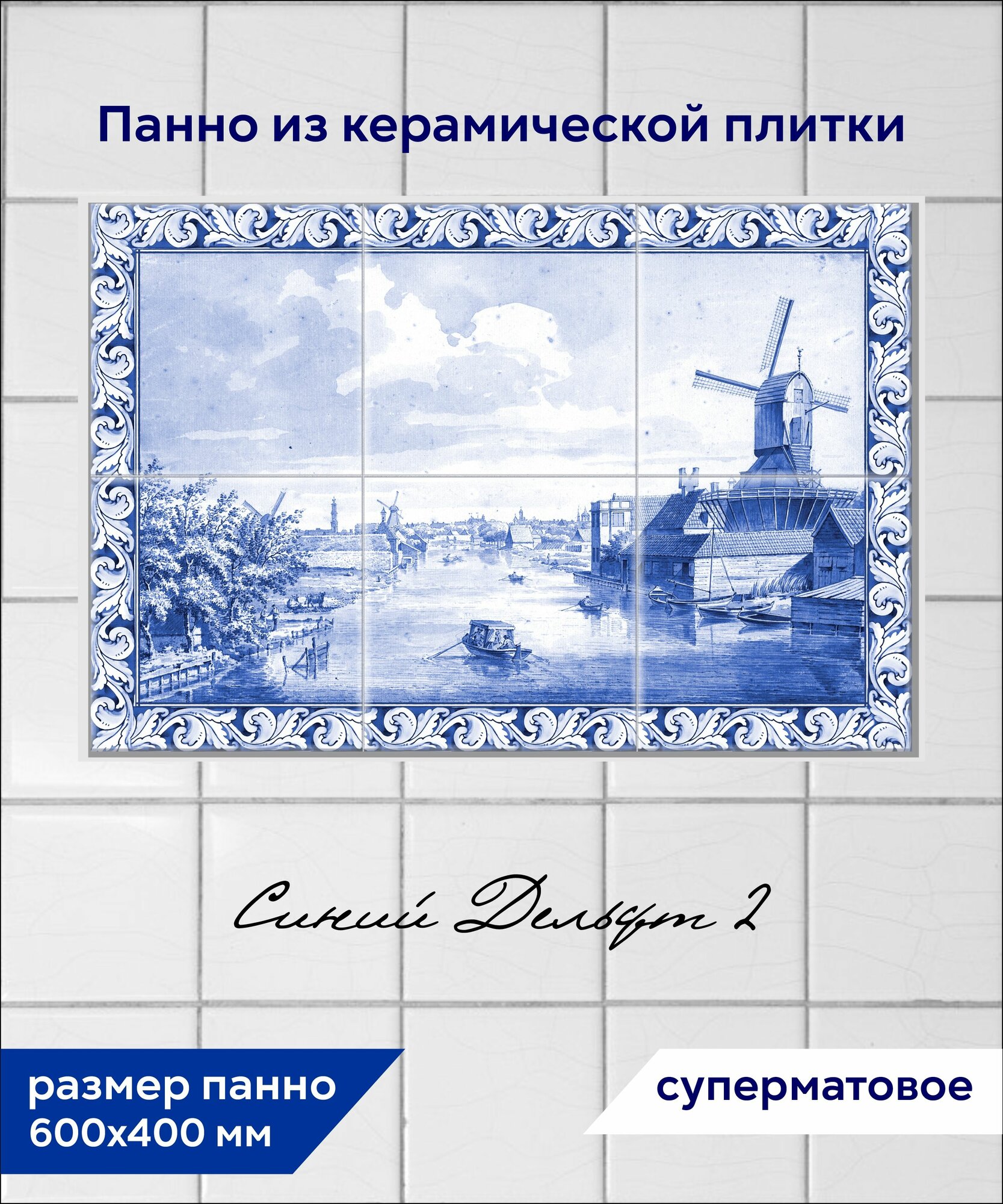 Панно из плитки Fres-co "Синий Дельфт 2", керамическое, декоративное, суперматовое 60x40 см интересное:
