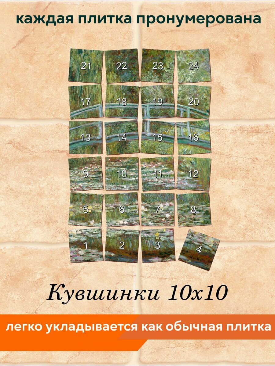 Панно из плитки Fres-co "Кувшинки 10х10", керамическое, суперматовое, декоративное, 40х60 см интересное: