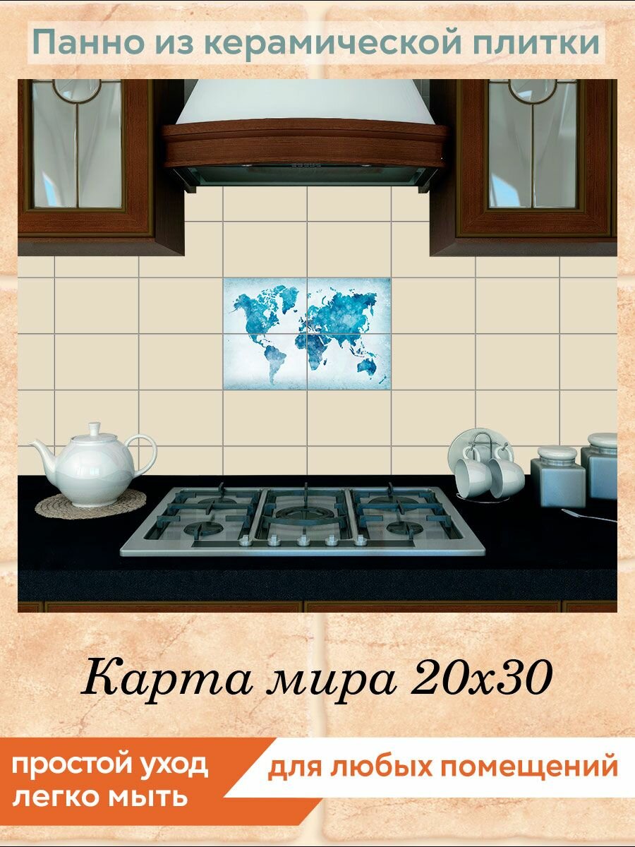 Панно из плитки Fres-co "Карта мира 20х30", керамическое, полуглянцевое, декоративное, 60х40 см интересное: