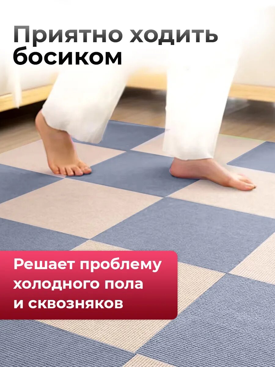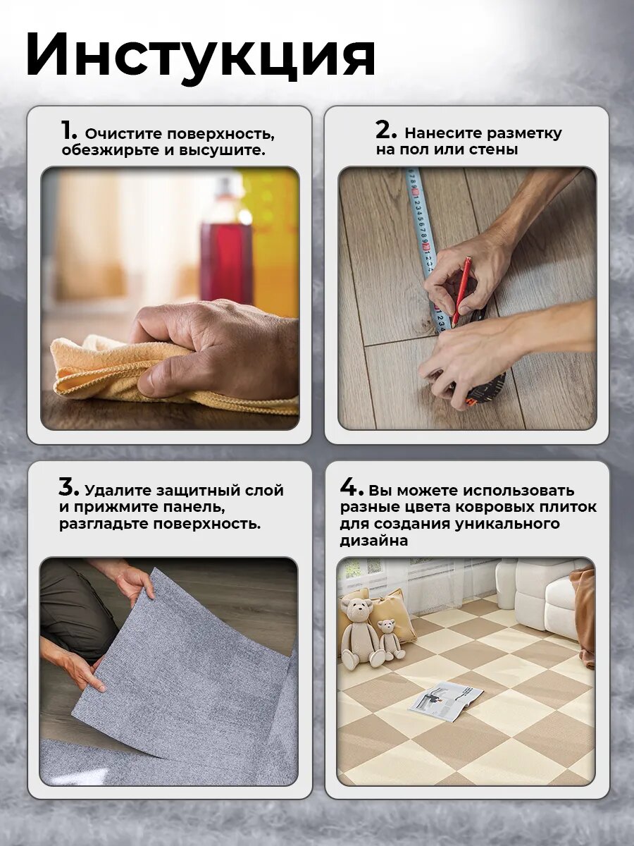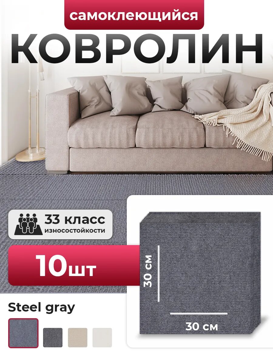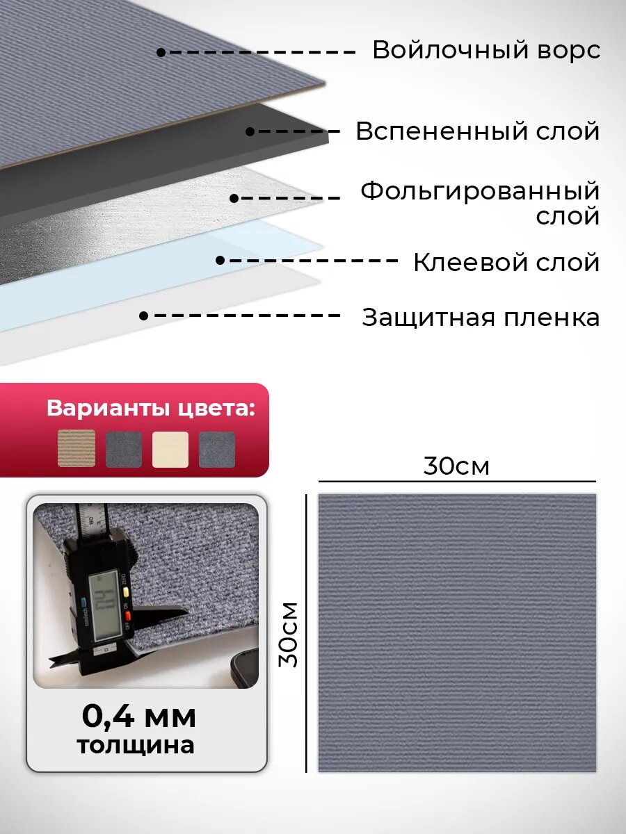 Самоклеящиеся ковровые панели, ковролин самоклеящийся, Conflate, светло-серые 30х30см 10 шт. интересное: