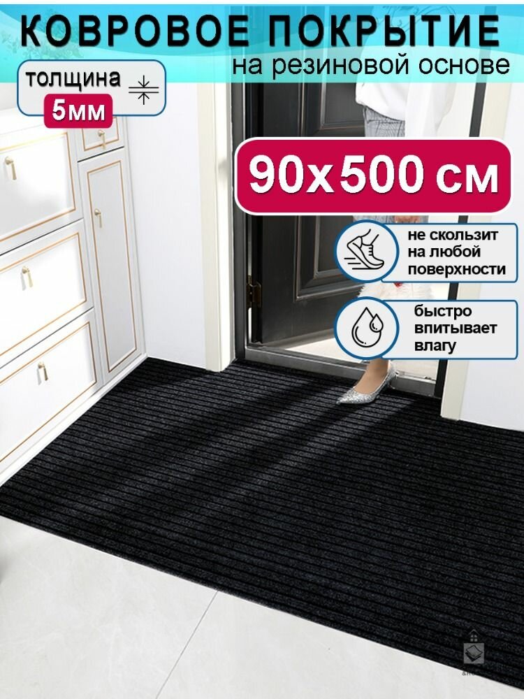 Ковролин Юпитер 3 на резиновой основе 90х500 для дома и офиса Черный