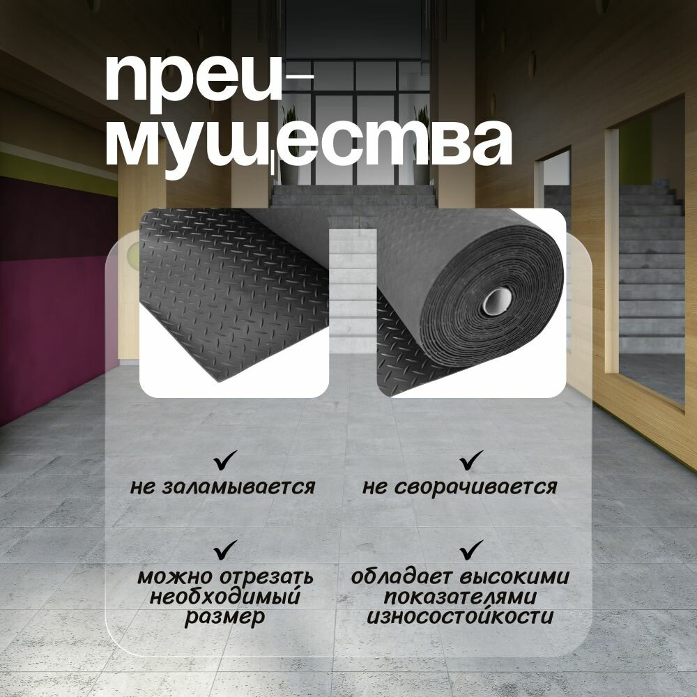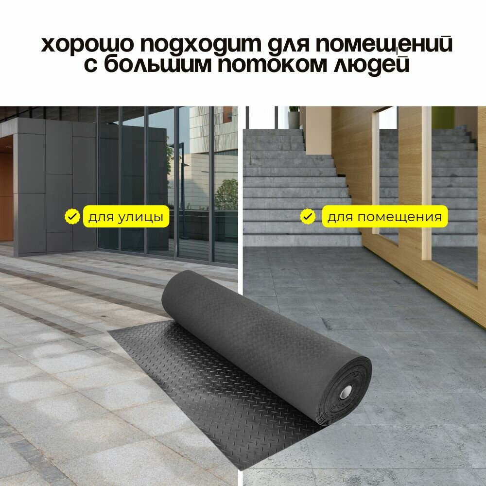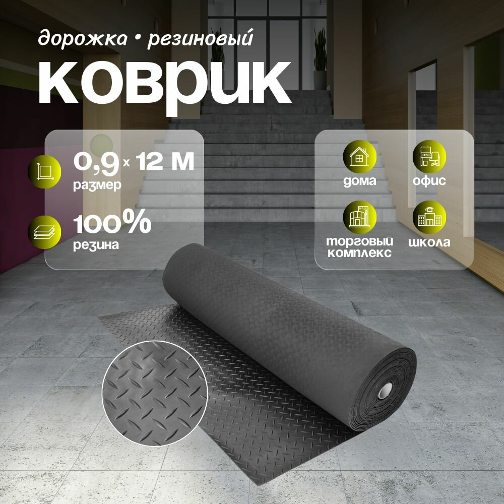 Коврик дорожка резиновый на пол Sanstep 0,9х12 м грязесборный, для улицы и офиса, для прихожей, грязезащитный. интересное: