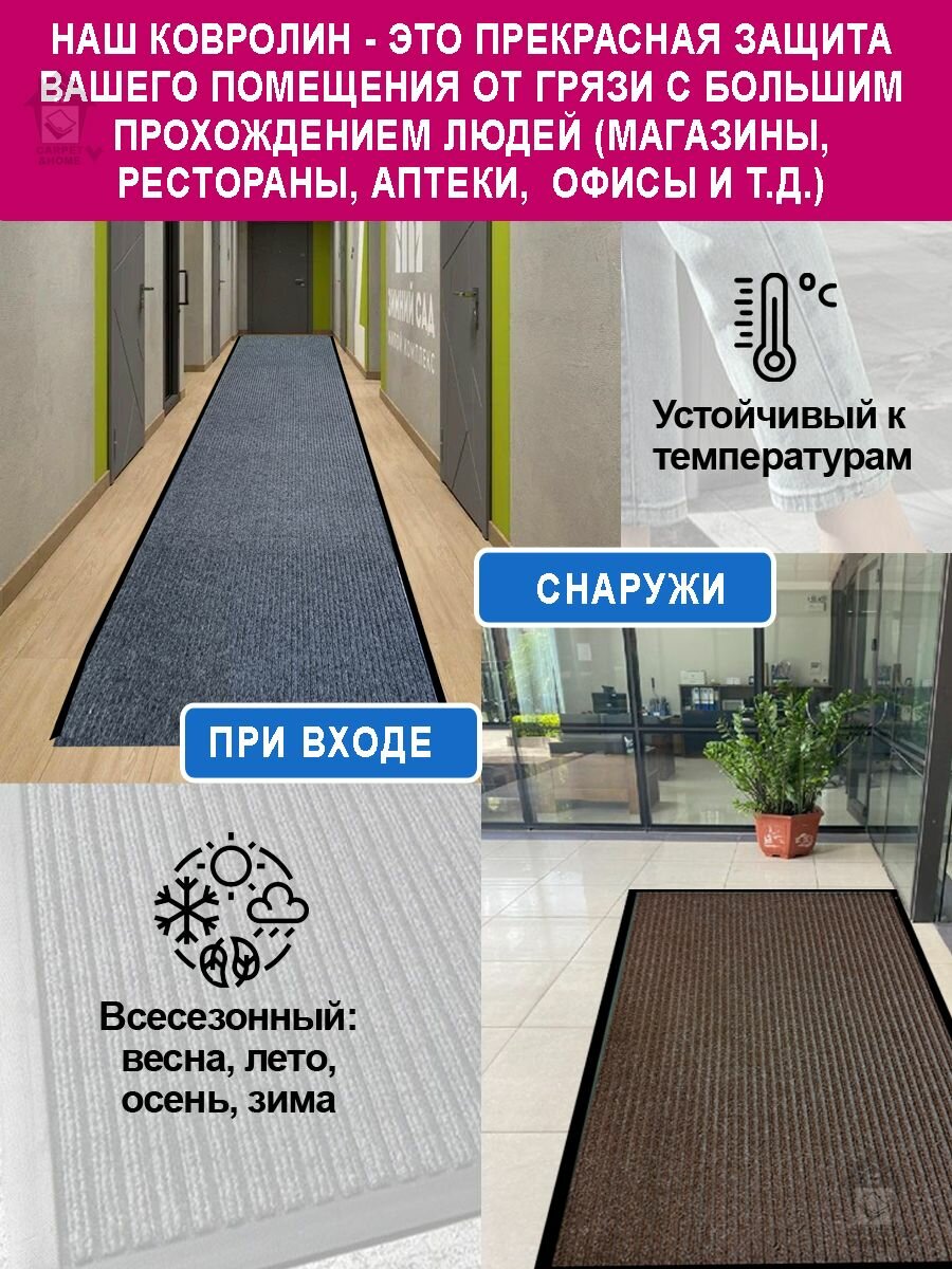 Ковролин на резиновой основе 100х700 для дома и офиса Коричневый