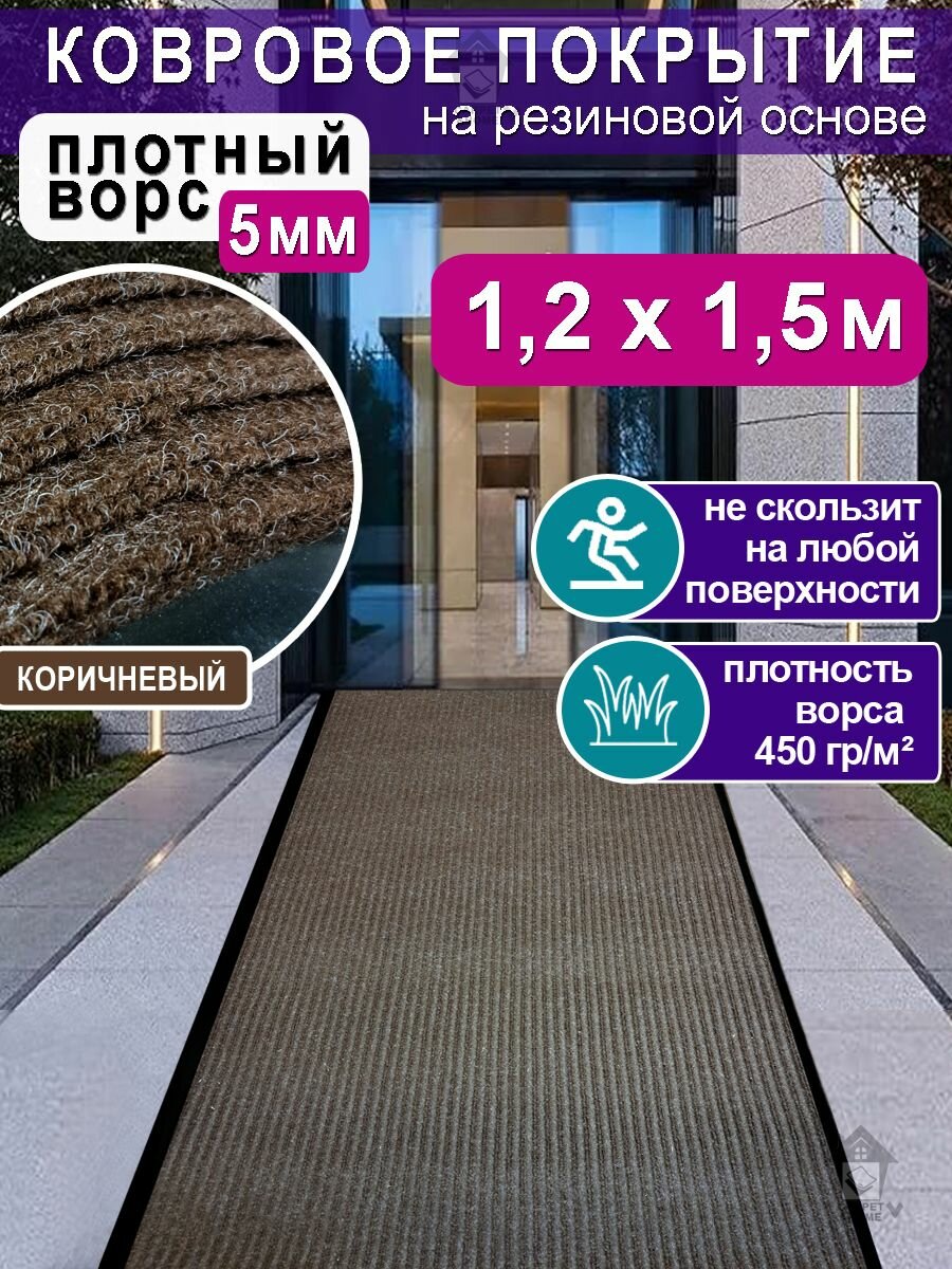 Ковролин на резиновой основе 120х200 для дома и офиса Коричневый