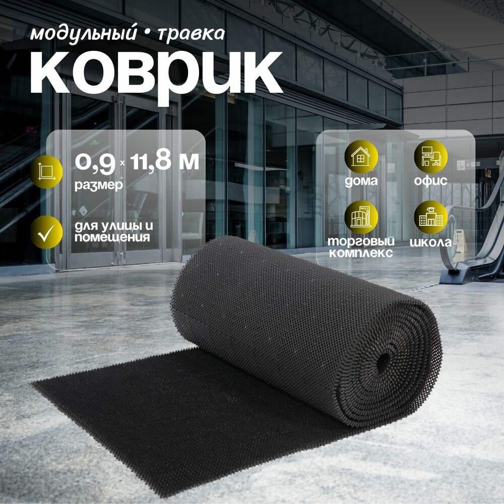 Коврик дорожка травка Sanstep 0,9х12 м щетинистое покрытие, рулон грязесборный, уличный для обуви, для улицы и офиса. интересное: