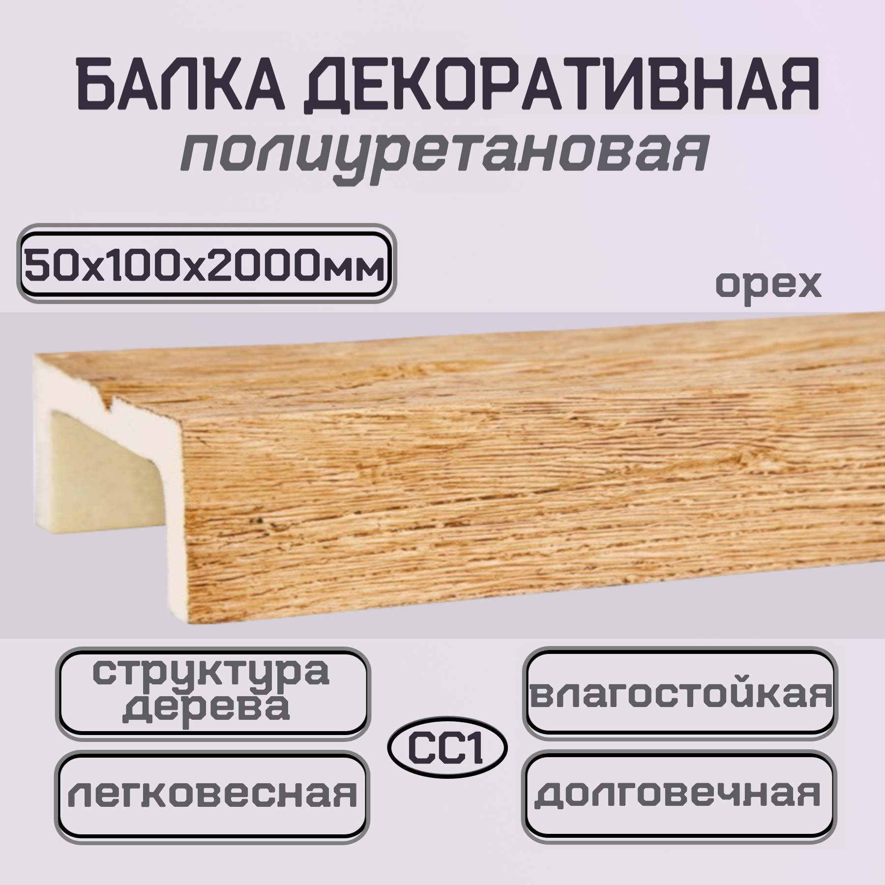 Балка декоративная полиуретановая имитация дерева 50ммх100ммх2000мм
