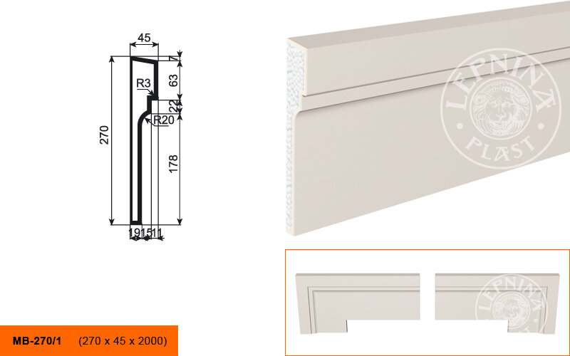 Молдинг Lepninaplast МВ-270/1, фасадный, армированный, пенополистирол ПСБ-С-35, 2 метра, 1 шт. интересное: