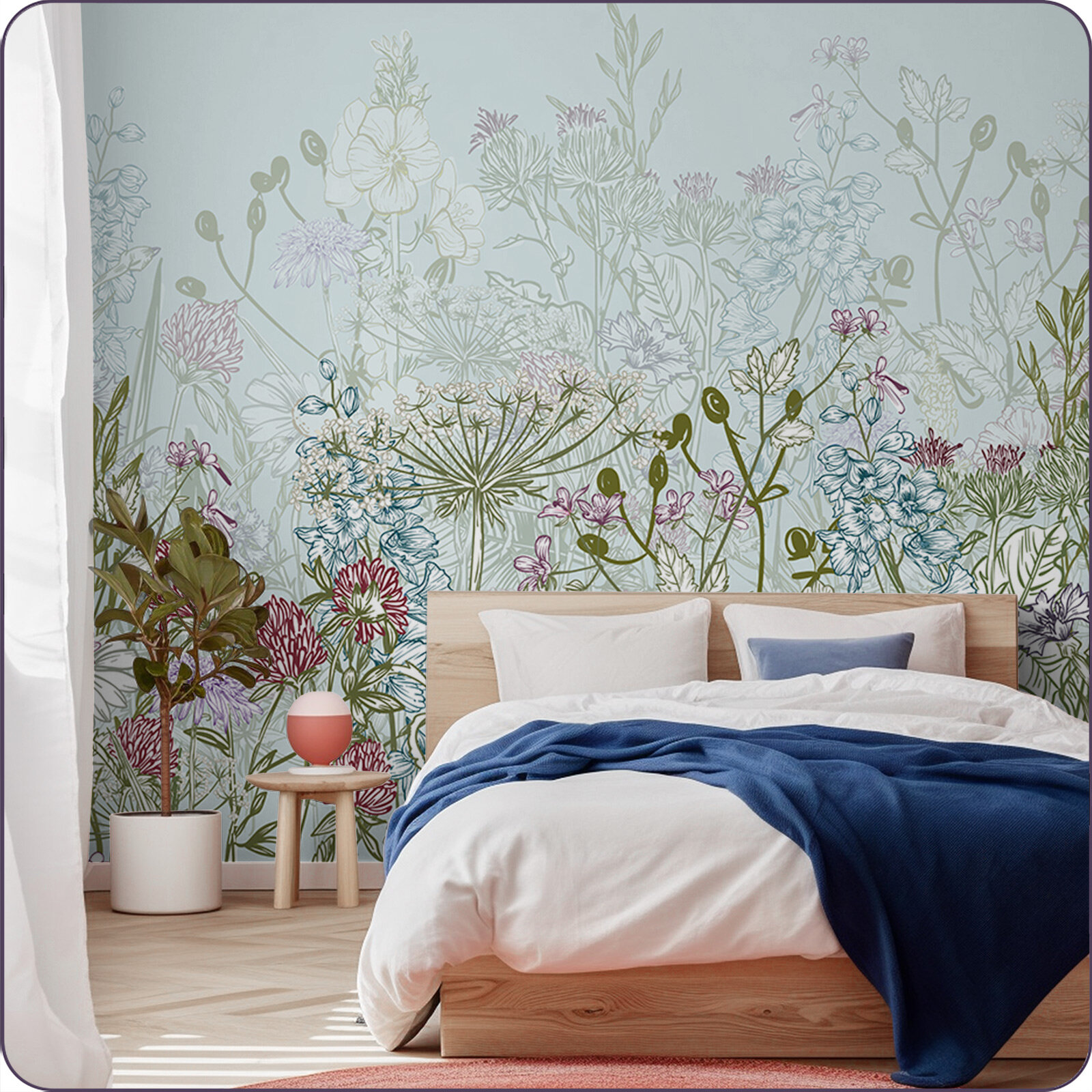 Купить Фотообои бесшовные 3d на стену флизелиновые Полевые цветы 223x250 см Bartonwall H10642-1