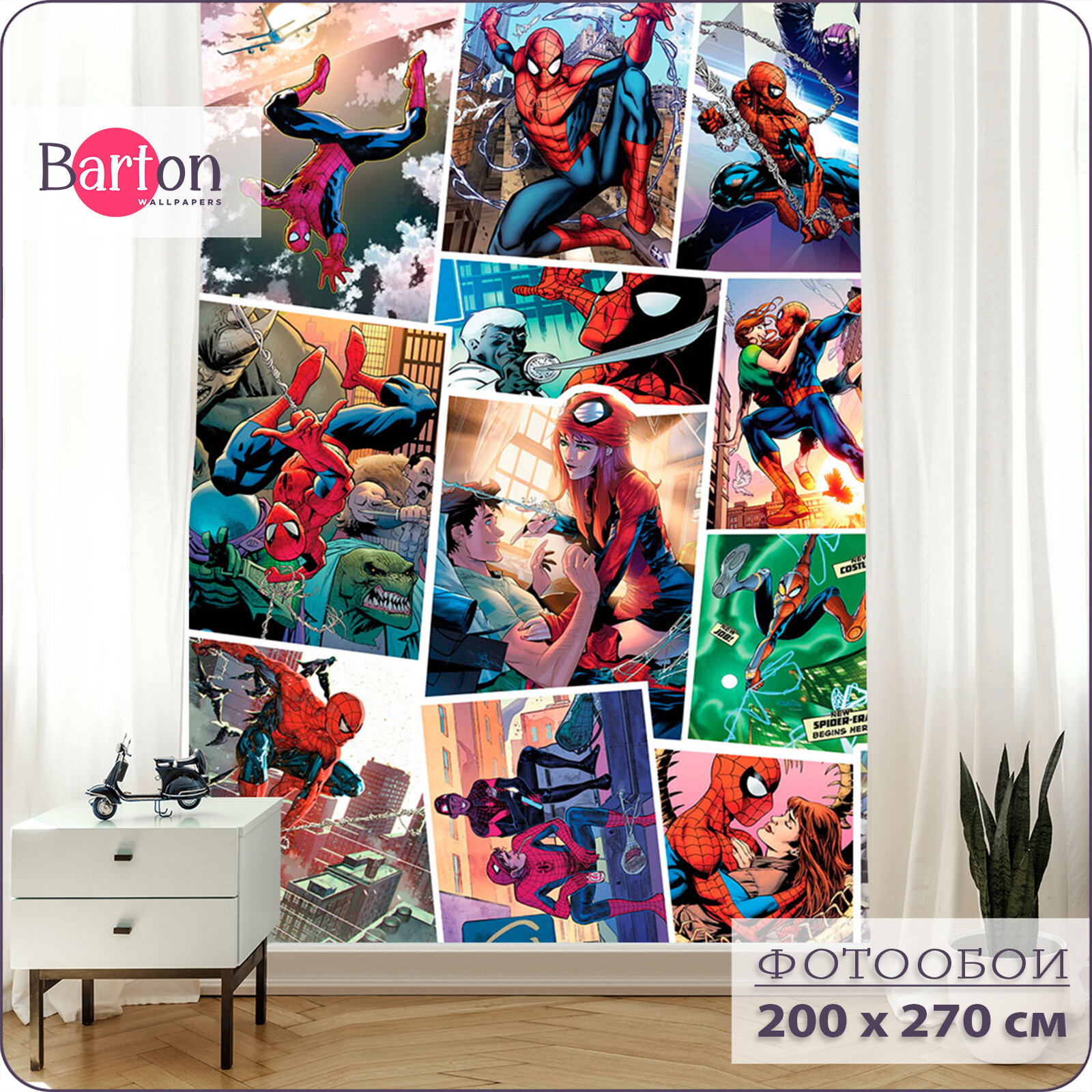 Фотообои на стену флизелиновые 3d Детские Комиксы Супергерои Человек Паук 200х270 см Bartonwall K032 интересное: