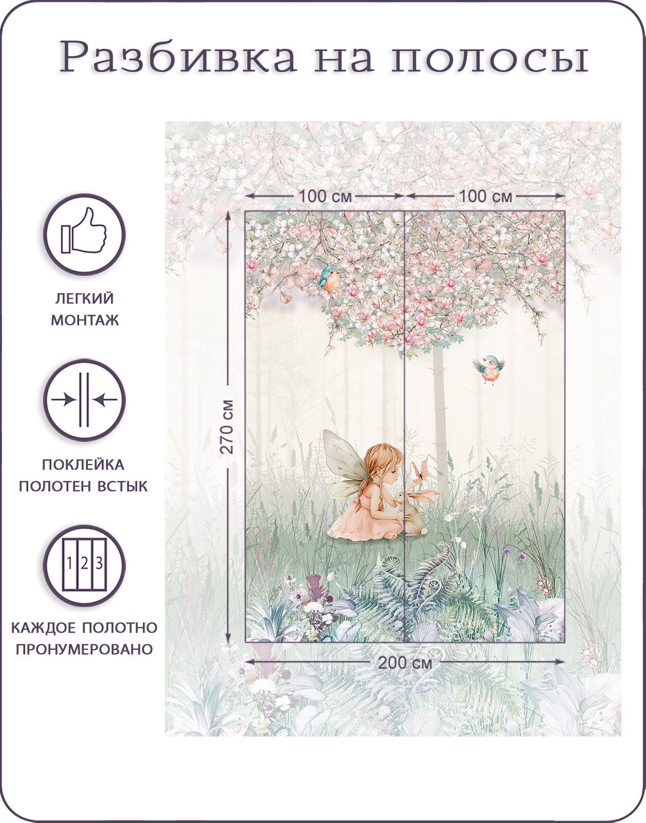Купить Фотообои на стену флизелиновые 3d Детские Для девочек Сказочный лес 200x270 см Bartonwall K313
