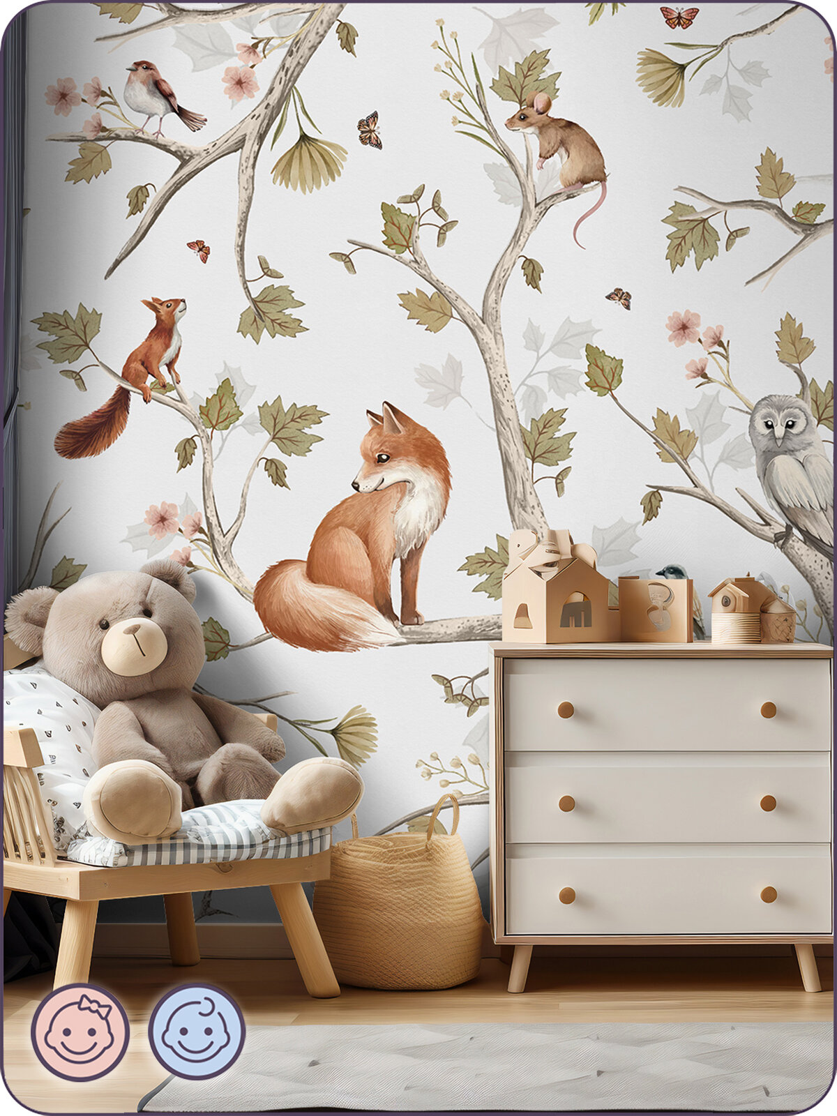 Фотообои на стену флизелиновые 3d Детские Животные Лес 200х270 см Bartonwall K297-P