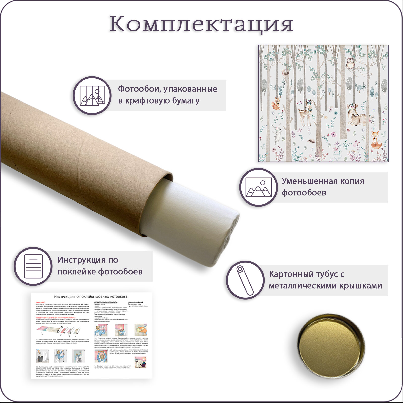 Фотообои на стену флизелиновые 3d Детские Сказочный лес Животные 200х270 см Bartonwall K305