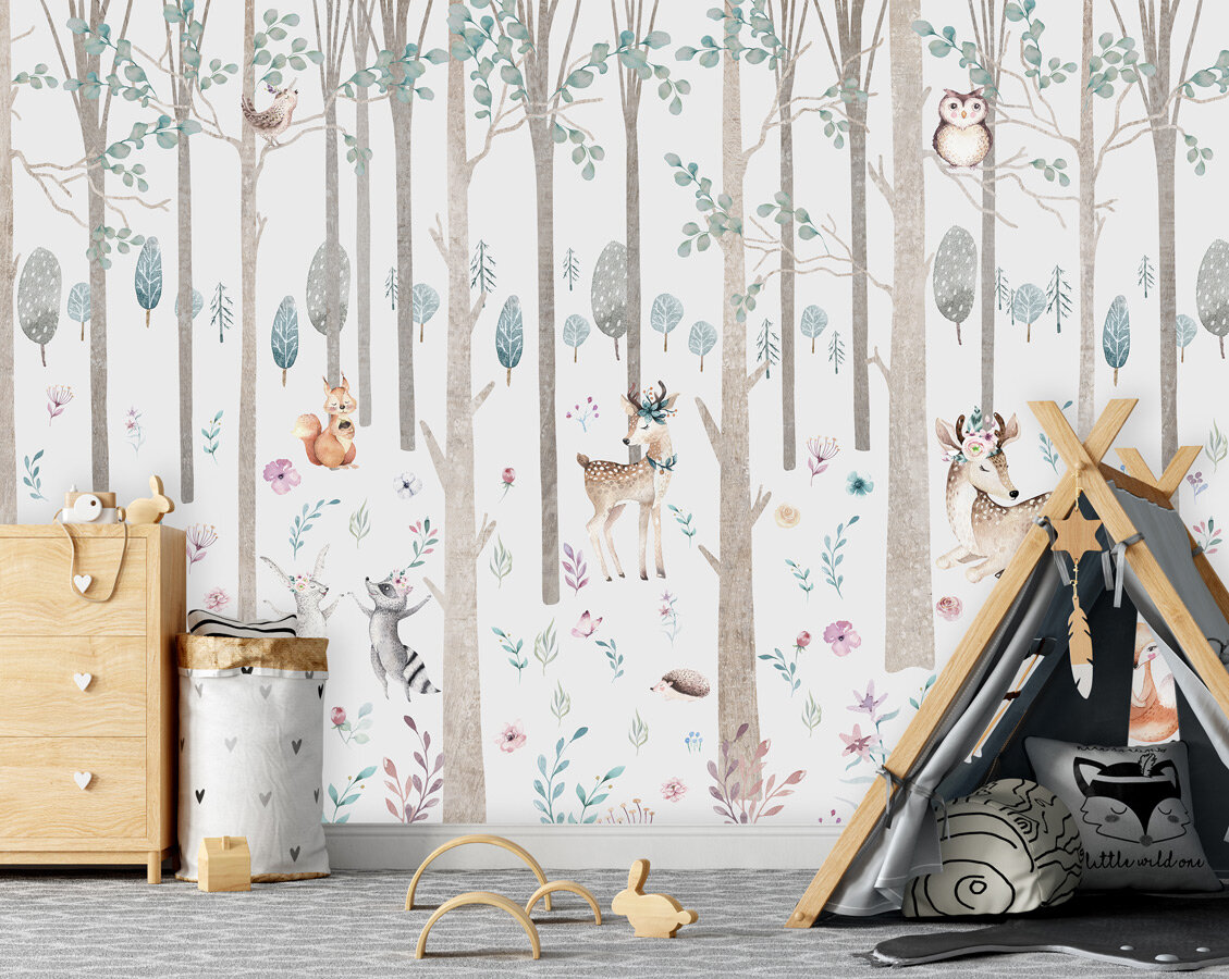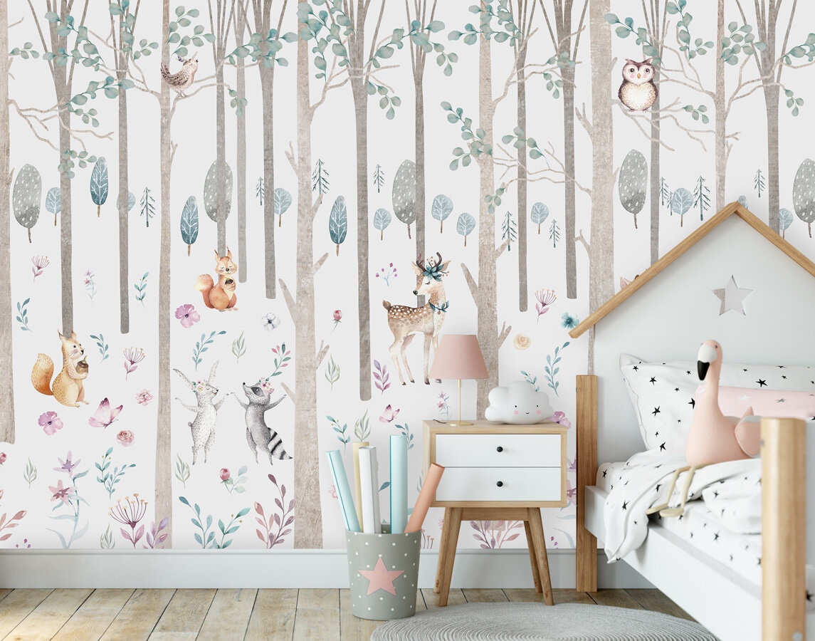 Фотообои на стену флизелиновые 3d Детские Животные Лес 400х270 см Bartonwall K297-P